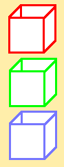 One box is red, another box is green, the other box is blue. |