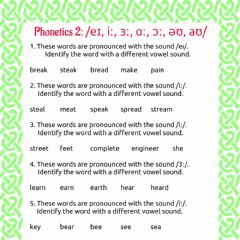 ✓ Phonetics 4: /aı, ɛə, ʌ, æ, ə, ı, ɛ, uː/ ![]() |
