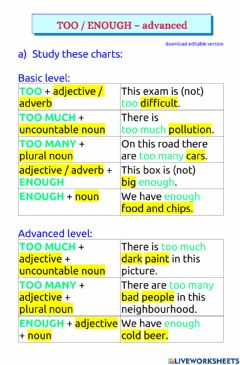 | UNIT 0 too / enough |