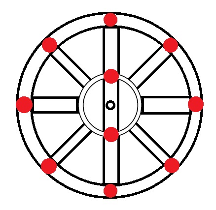 We can imagine electrons as nails holding together the radia to the wheel's axis and circumference: