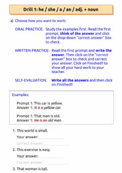 Drill 1 — he-she-it + is + a-an + noun![]() |