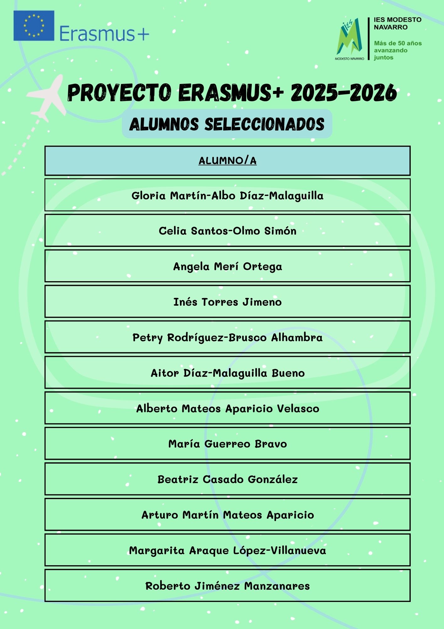 Ellos serán los encargados de representar a nuestro centro en el proyecto Erasmus+ 25/26 en Chalais, Francia.