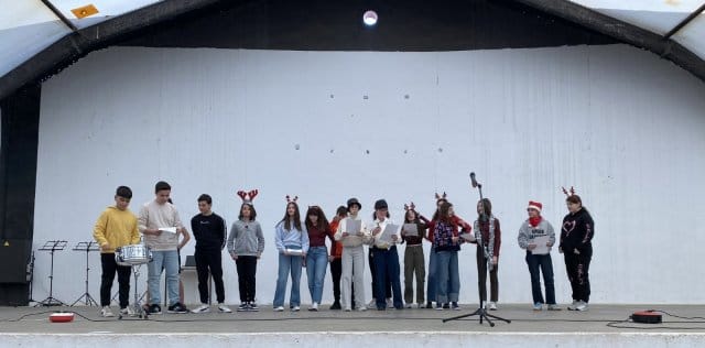 Los ganadores de este fueron los alumnos de 1° de Bachillerato con una letra inspirada en el crucero que próximamente van a disfrutar. Los segundos clasificados fueron los alumnos de 3° D, hablando de las cosas del instituto y de la localidad y los terceros han sido los alumnos de 2° C, con "Los cuñados del Modesto". Estos últimos ya alegraron con su actuación a los alumnos franceses del proyecto Erasmus y a residentes del CADIG que han visitado nuestro instituto esta semana. Gracias a alumnos y profesores por su buen humor y a la AMPA, como siempre, por colaborar con nosotros.