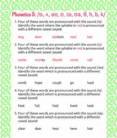 ✓ Phonetics 5: /ɒ, ʌ, əʊ, ʊ, ɪə, ʊə, θ, h, b, k/ ![]() |