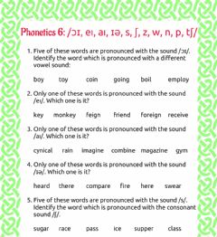 ✓ Phonetics 6: /ɔɪ, eı, aı, ɪə, s, z, w, n, p, tʃ/ ![]() |
