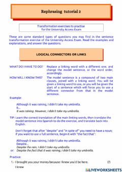 Rephrasing 1 (Sample transformations worksheet - Evau Castilla-La Mancha - Exam 2018 B - Sexism in reggaeton)![]() |