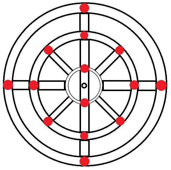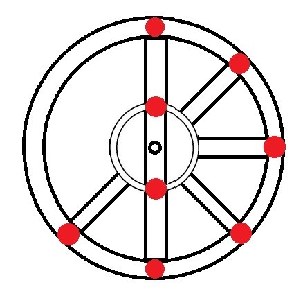 We can imagine electrons as nails holding together the radia to the wheel's axis and circumference: