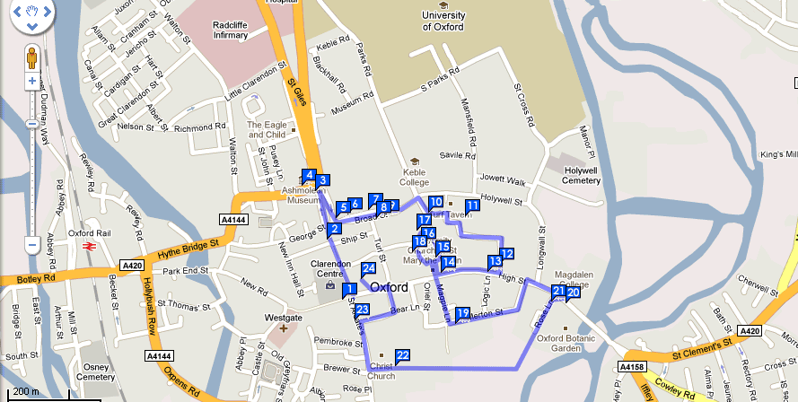 An important place is the Ashmolean Museum (number 4 in the map), which is the oldest museum in Great Britain.