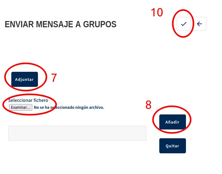 - IMPORTANTE: pincha en el botón "Añadir" para que efectivamente se cargue el fichero antes de enviar tu mensaje.