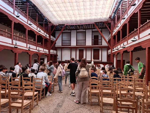 El 24 de septiembre, nuestro alumnado de 3° de ESO ha viajado a Almagro para visitar rincones con encanto como su plaza, el Corral de Comedias, la iglesia de San Agustín, la Casa Palacio de Juan Jédler y el exterior de algunos palacios de familias nobles. Han aprendido cuál era el principal entretenimiento del siglo XVII y la historia de estos bonitos lugares.