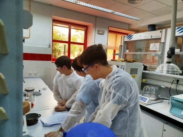 El alumnado de 2° de Bachillerato han participado en las "Jornadas hacia un futuro sostenible" organizadas por la facultad de Ciencias Químicas de la UCLM en el campus de Ciudad Real. Han realizado prácticas en los laboratorios universitarios determinando la viscosidad de un líquido, estudiando la velocidad de las reacciones, sintetizando polímeros y desnaturalizando proteínas de la soja.
