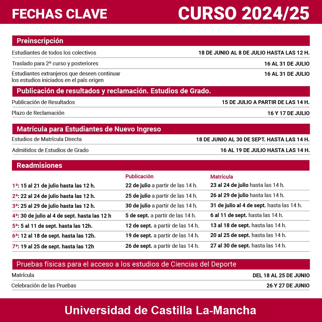 - Plazo de presentación de solicitudes desde el día siguiente al de su publicación hasta el 24 de junio de 2024 en caso de solicitudes para los exentos prueba de acceso.
